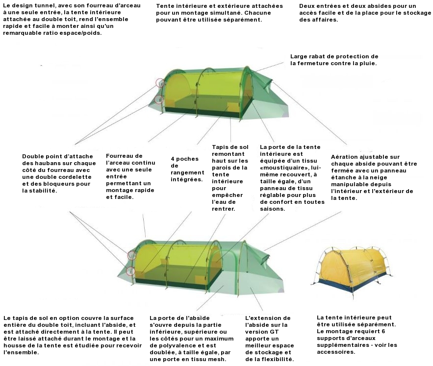 - Support d'arceaux : ils vous permettent d'utiliser votre tente intérieure seule, sans le double toit.