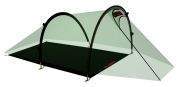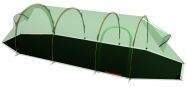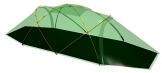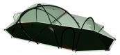 Cette option permet, outre son évidente protection, de transformer votre tente en tarp avec tapis de sol si vous enlevez la chambre et de faire un abri mono-paroi. Ainsi, par exemple, une Nammatj 2 GT, qui est à l'origine une tente pour 2 personnes, se transforme en abri ultraléger, à la résistance incomparable, pour 4 personnes. Sur la photo, à gauche, ma Nammatj 2 GT, transformée en tente familiale. A quatre, le long du Cher, pendant une semaine, en canoë-bivouac. |